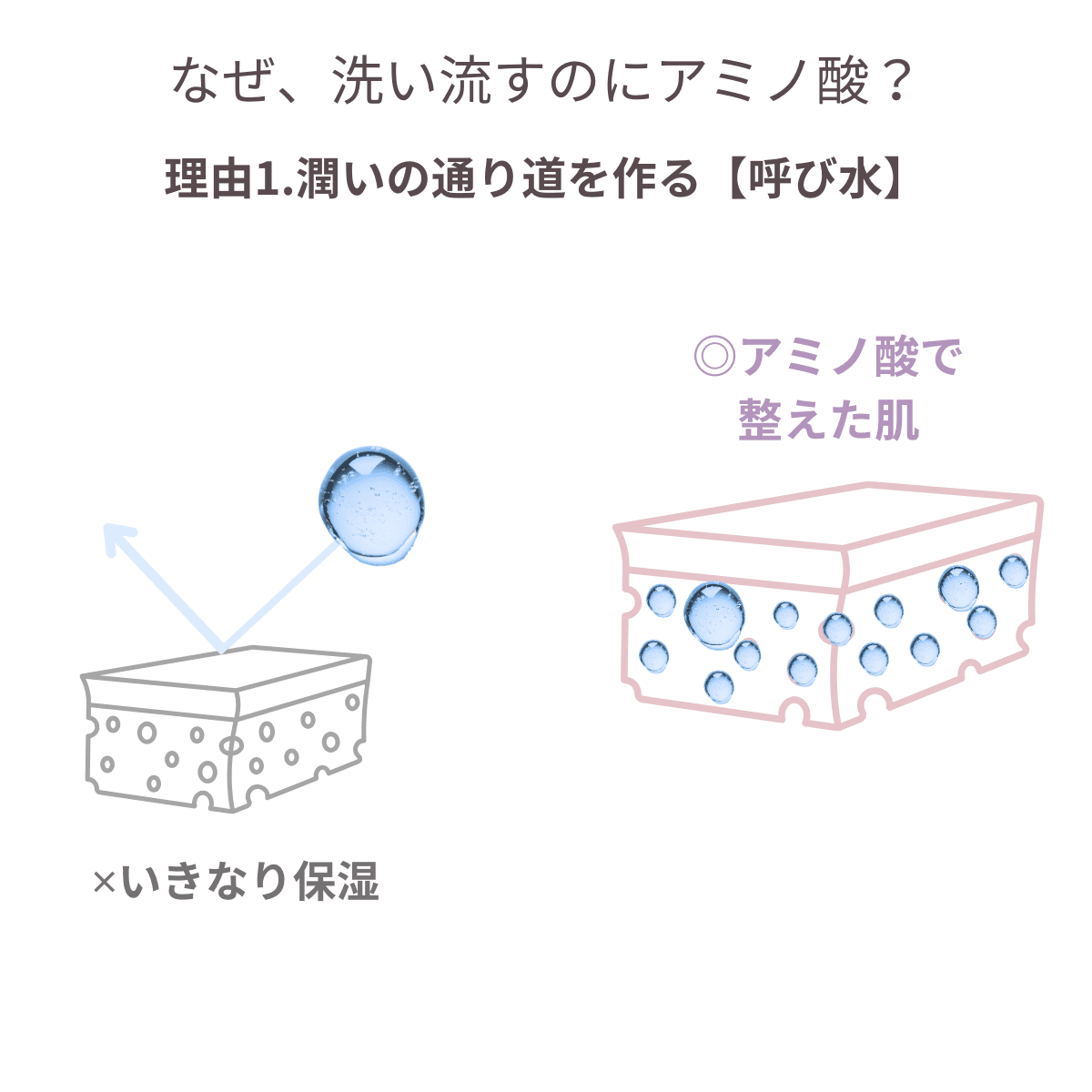 洗浄料にアミノ酸を配合する理由①|潤いの呼び水効果を図解