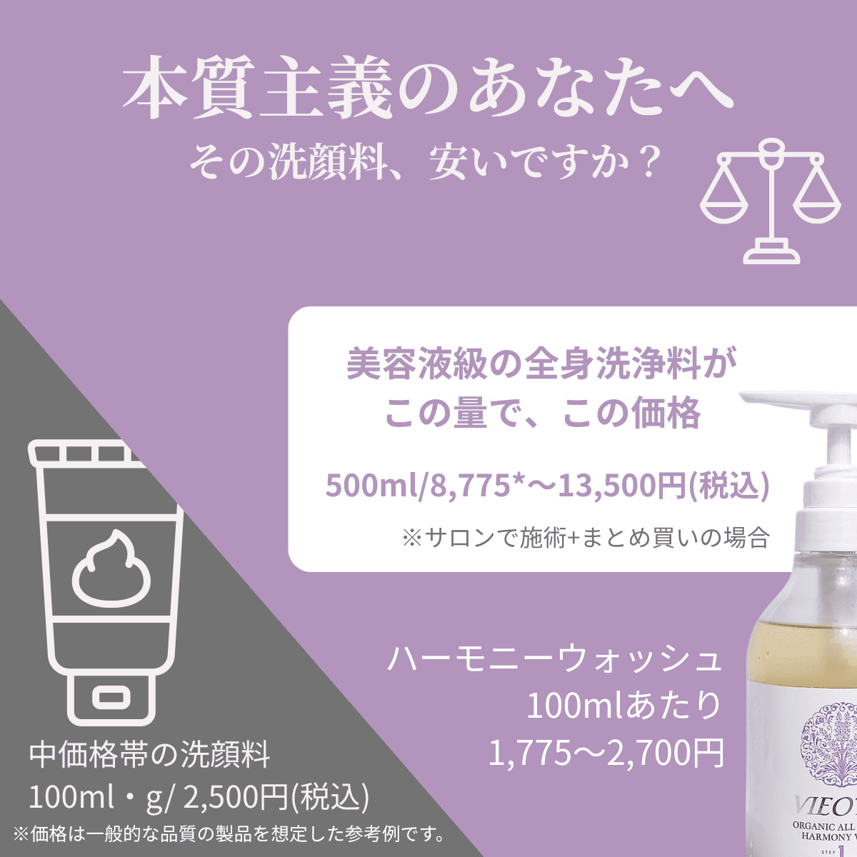 ハーモニーウォッシュの価格価値|100ml単価で高級洗顔料と比較